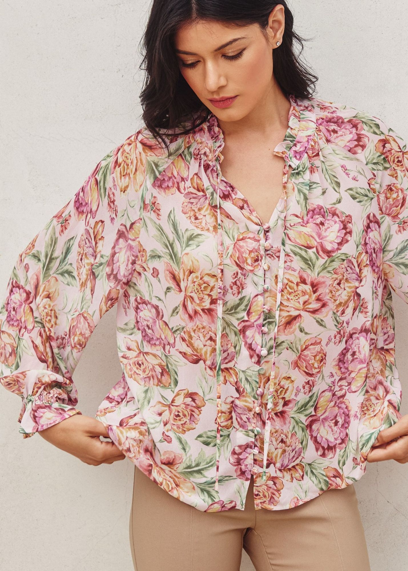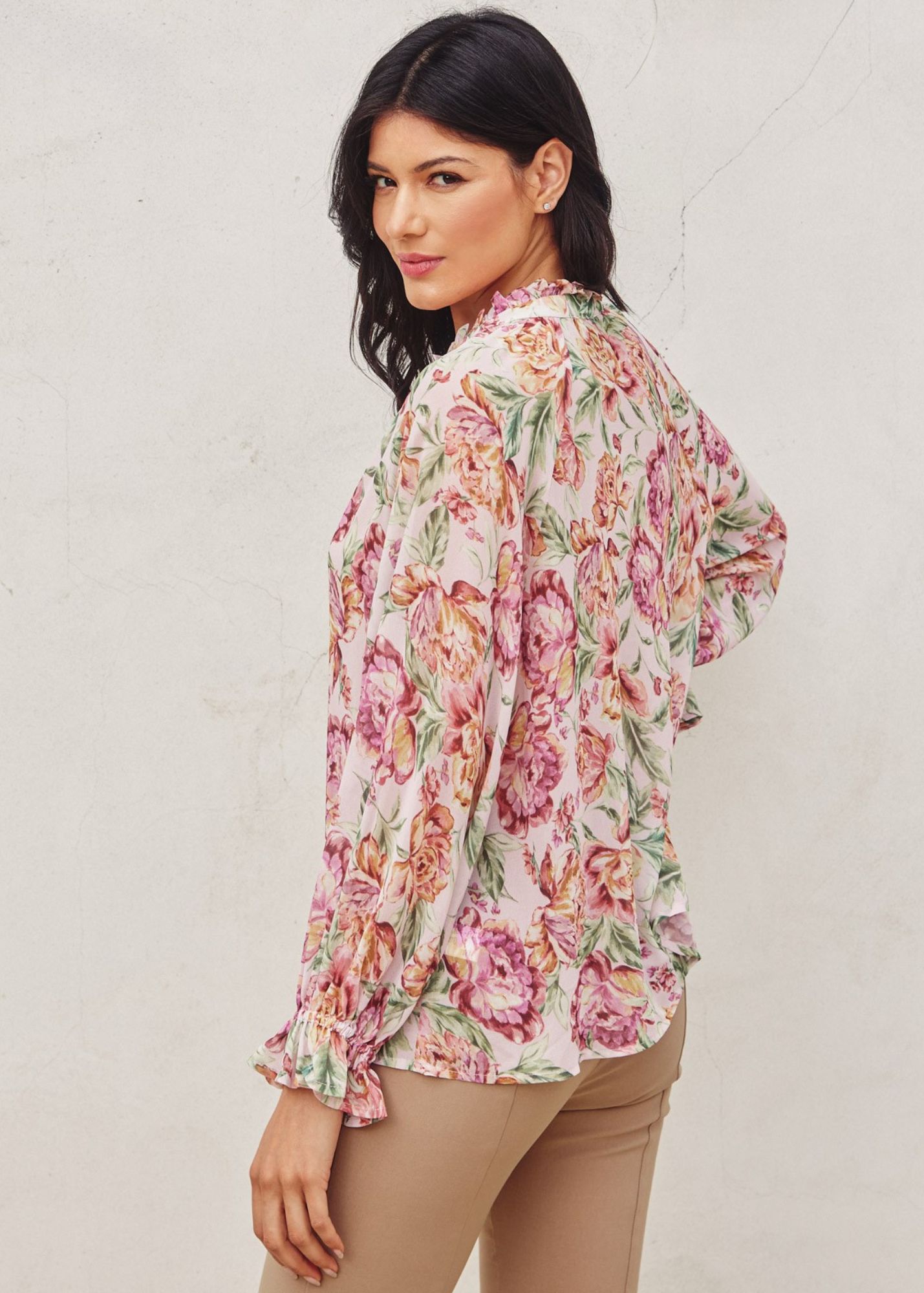- Mauve and peach floral blouse